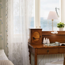 Endast 200 meter bort ligger vår huvudbyggnad Strandflickornas Havshotell. Där kan du slå dig ner i vår charmiga restaurang Fröken Fridhem — njut av en drink, en flärdfull fika eller en god bit mat från vår bistromeny.